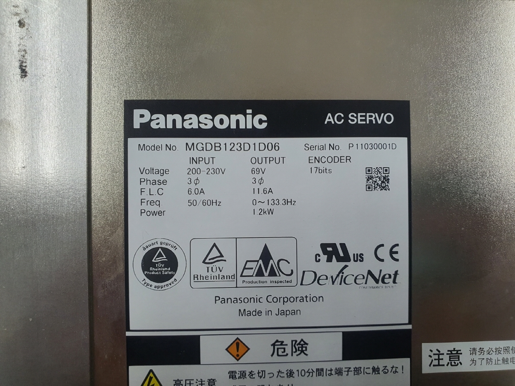 #PANASONIC AC SERVO DRIVER / MGDB123D1D06