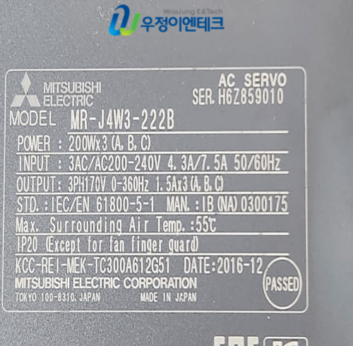 ■ 품 명 : [중고] MITSUBISHI 서보드라이버 MR-J4W3-222B SER;2016-12 (31208-12)