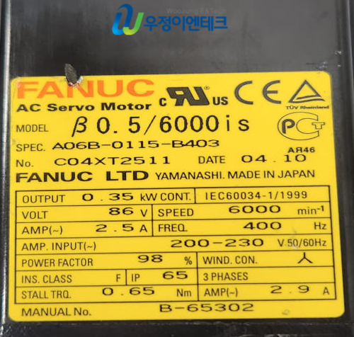 ■ 품 명 : [중고] FANUC 서보모터 A06B-0115-B403 (40205-23)