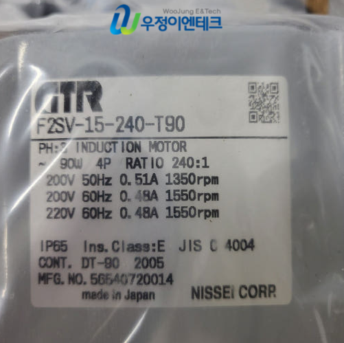 ■ 품 명 : [중고] NISSEI 인덕션 기어드모터 F2SV-15-240-T90 240:1 미사용 개당가격 (40726-53)